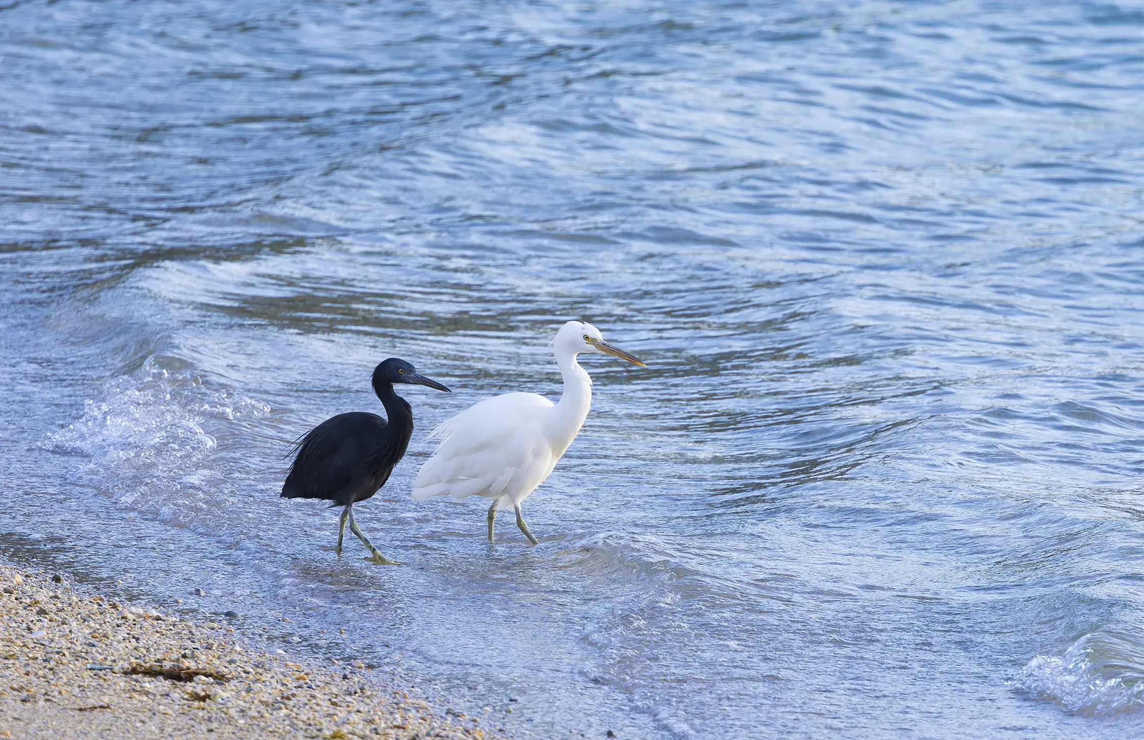 仲の良い黒いクロサギと白いクロサギ(日本野鳥の会 2025年会員証写真) 2024年1月 沖縄県 名護市