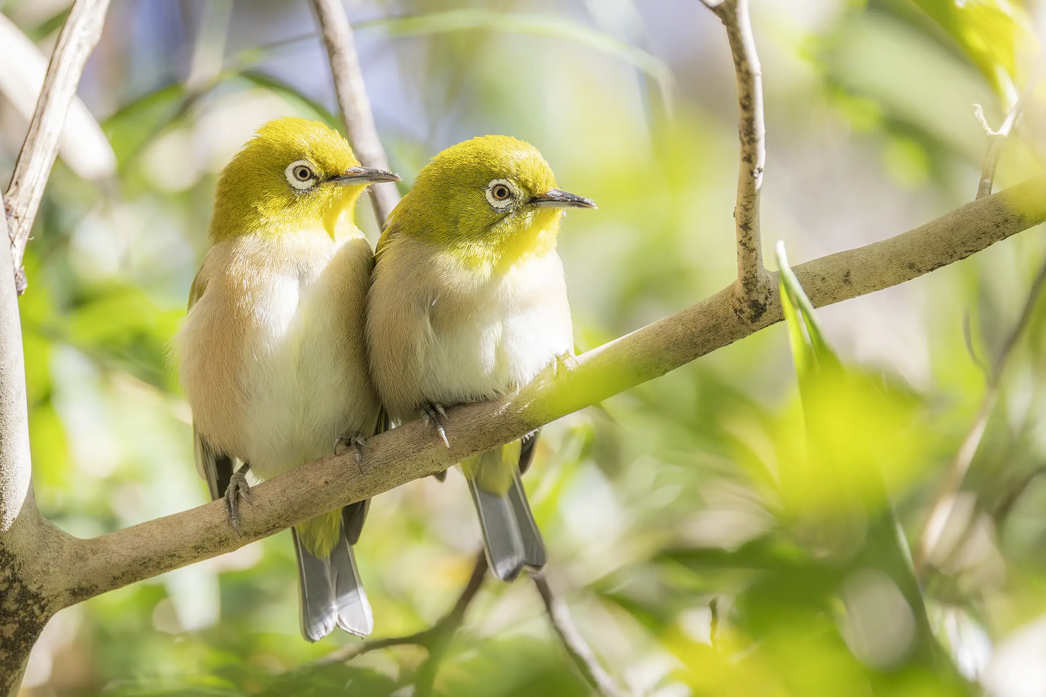 肩を寄せ合うメジロ 2023年2月 東京都渋谷区 明治神宮御苑